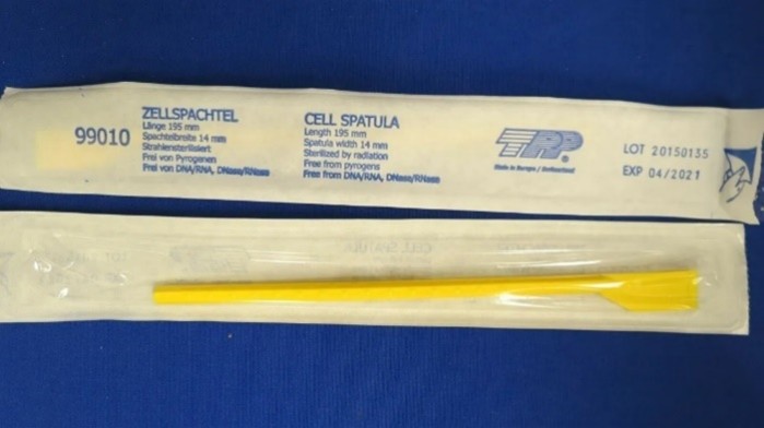 Espátula fija para cultivo celular. Mango de polipropileno de 19.5 cm de longitud y 14 mm de ancho de la espátula